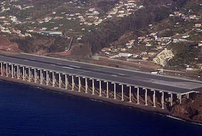 Madeira International Airport, terletak di dekat Funchal, Madeira di Portugal pertama kali dibuka pada Juli 1964 dengan dua landasan pacu sepanjang 1.600 meter . Landasan pacu yang pendek membuat jalur dan pengendalian pesawat menjadi rumit bahkan untuk pilot yang paling berpengalaman. Pegunungan tinggi di sekitar bandara dan laut di dekatnya menambah masalah. Pertama pilot harus mengarahkan pesawat mereka ke pegunungan, dan kemudian mengerem keras untuk mendarat di landasan. Selain untuk pergeseran arah, angin dengan suhu lebih tinggi datang dari laut memenuhi udara pegunungan yang dingin kering, yang sering menghasilkan yang cukup turbulensi besar.